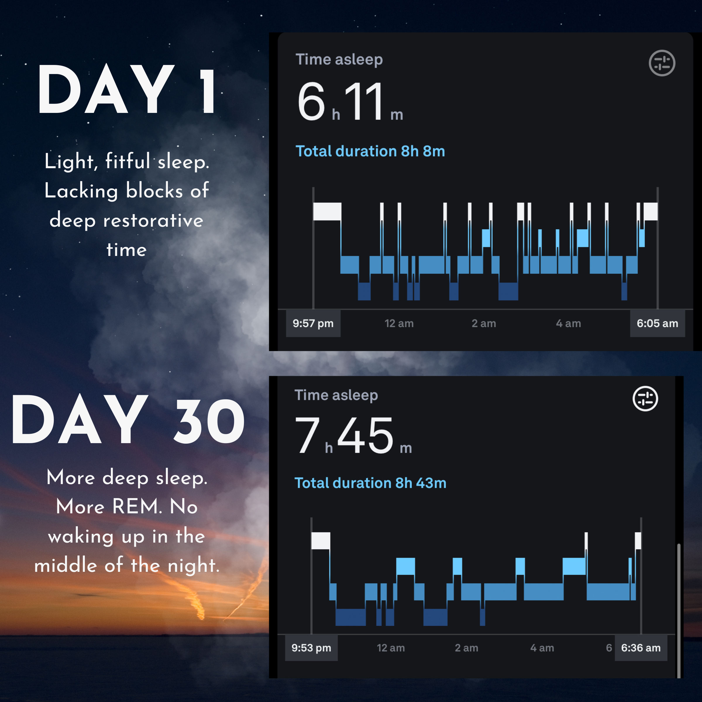 Within 30 days you'll notice better sleep and recovery, easier fat loss, improved workouts and muscle tone.