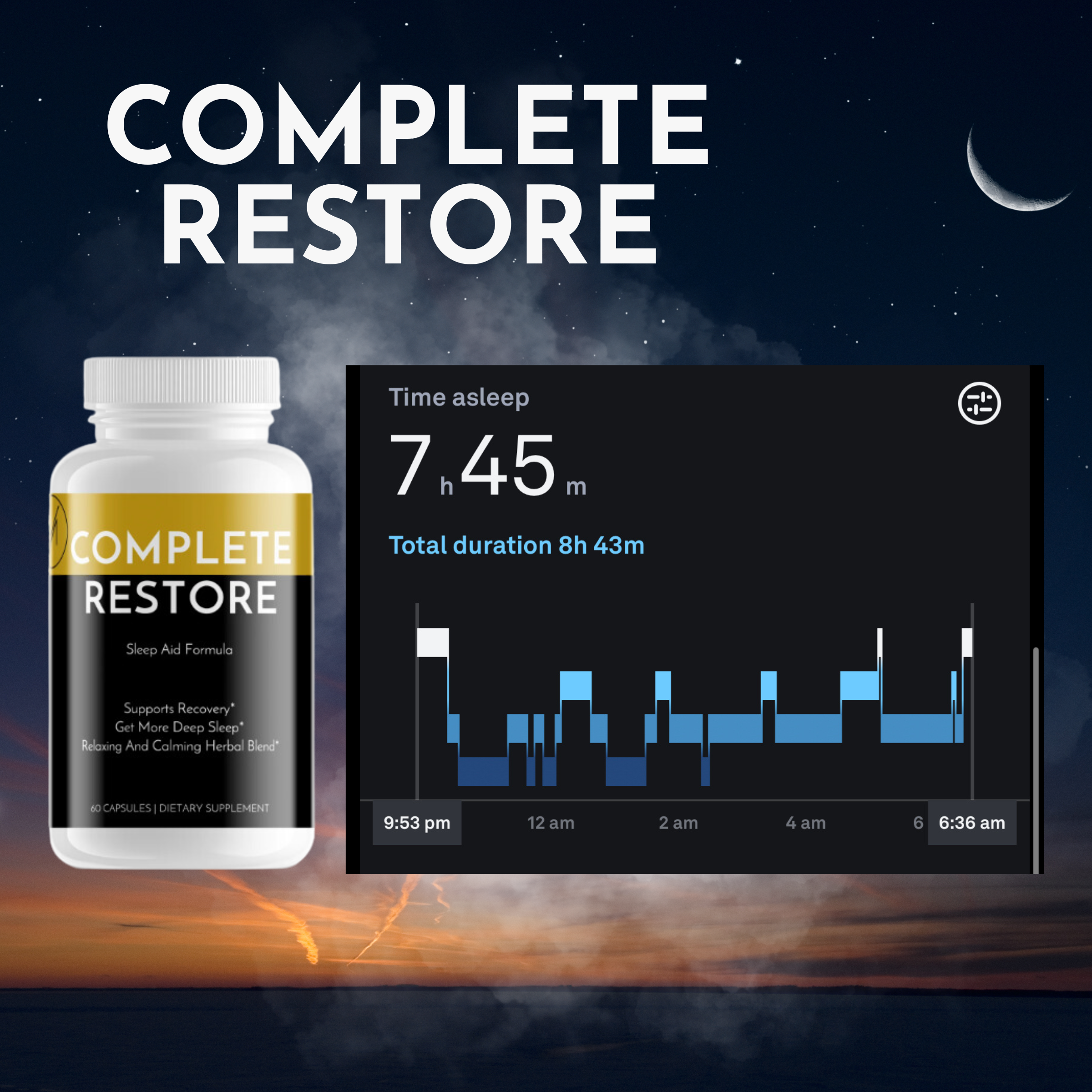 Once I hit 35 I had trouble falling asleep or I would wake up around 3 and not be able to fall back asleep. Complete Restore has completely reversed that.
